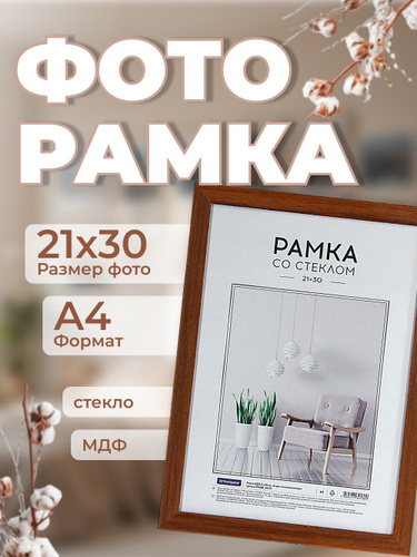 Рамка деревянная 21*30см, OfficeSpace, ЭКОНОМ, мокко