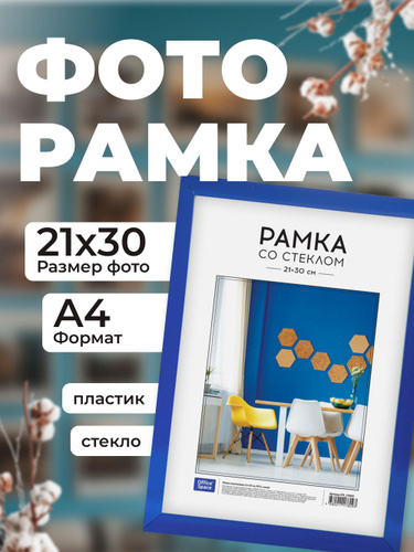 Рамка для фото пластиковая 21*30см, OfficeSpace, №1, синяя (225451)