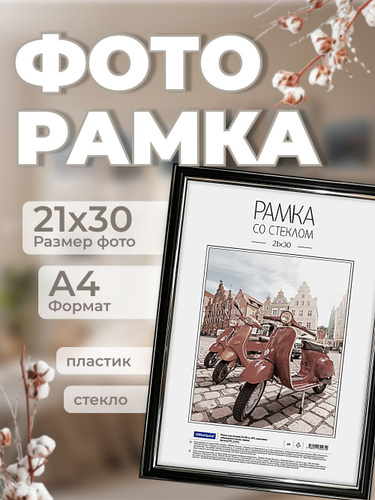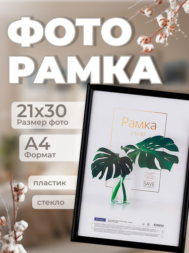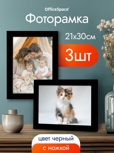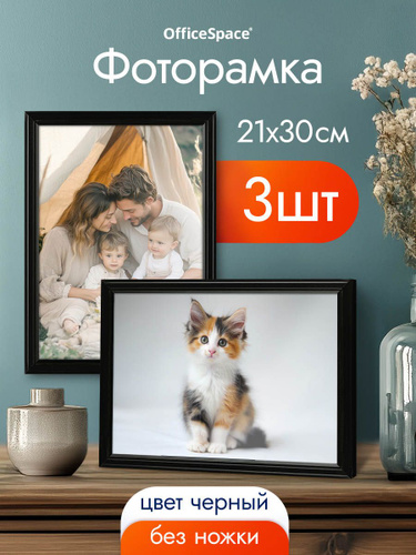 Рамка для фото пластиковая 21*30см, OfficeSpace, №6/1, черная