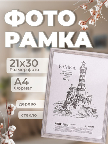 Рамка для фото деревянная 21*30см, OfficeSpace, №1, акриловое небьющееся стекло, серебро