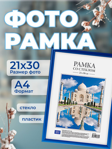 Рамка для фото пластиковая 21*30см, OfficeSpace, №12, синяя РП_19809