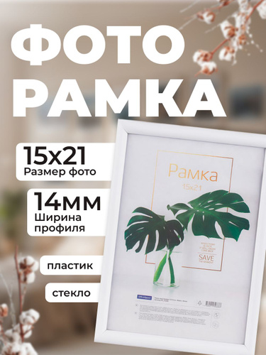 Рамка для фото пластиковая 21*30см, OfficeSpace "Basic", небьющееся стекло, белая