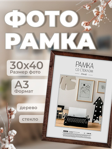 Рамка для фото деревянная 30*40см, OfficeSpace, №3, венге