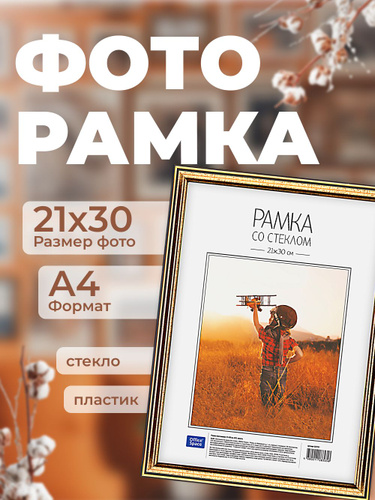Рамка для фото пластиковая 21*30см, OfficeSpace, №2, золото