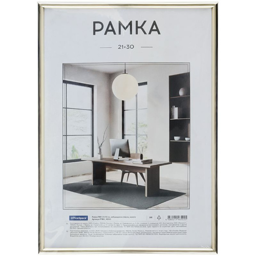 Рамка для фото ПВХ 21*30см, OfficeSpace, небьющееся стекло, золото