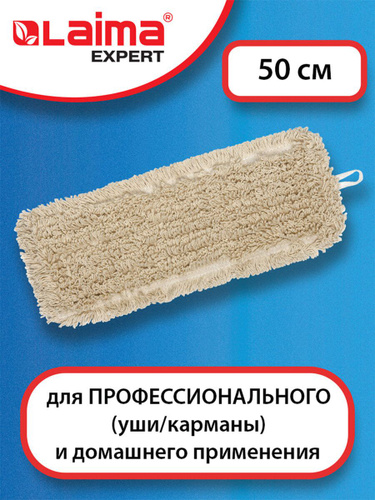 Сменная насадка МОП для швабры с карманами, 50 см, нашивной хлопок, Лайма Expert