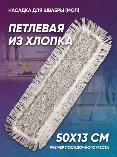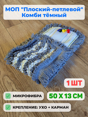 МОП насадка на швабру Плоский-петлевой 50x13 см крепление ухо + карман 1 шт.