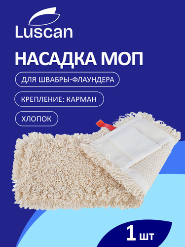 Насадка для швабры Luscan плоская, МОП для швабры, на карманах, из хлопка, длина 50 см