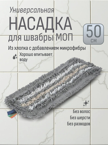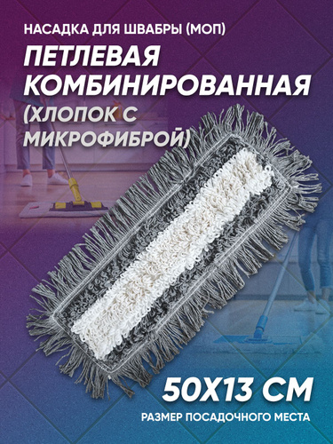 Моп (тряпка) для швабры 50 см, хлопок+микрофибра, петельный