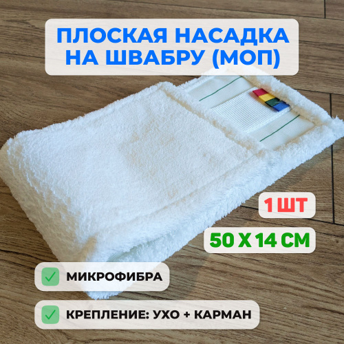 Насадка для швабры плоская (МОП), микрофибра, белый. 50х14 см. 1 шт.