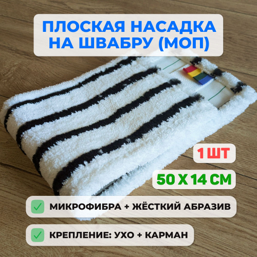 Насадка для швабры плоская (МОП), микрофибра, абразив. 50х14 см. 1 шт.