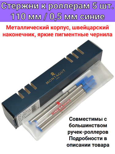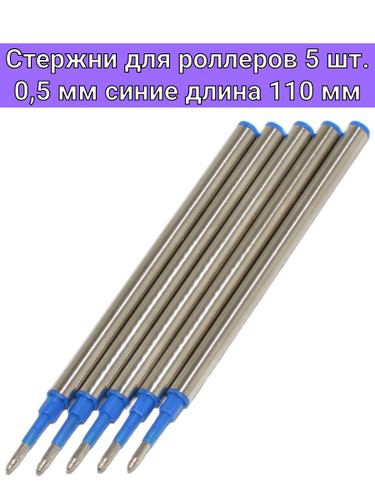 Стержень для роллера 110 мм 0.5 мм синий 5 штук для ручек Senator, Schneider, Pierre Cardin, Faber-Castell, Lamy, Cross, Waterman, Caran d'Ache и других роллеров