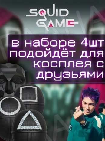 Маска игра в кальмара набор из 4х штук