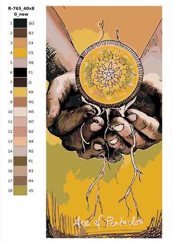 Картина по номерам R-765 "Таро карта - Масть Пентаклей" 40x80 см