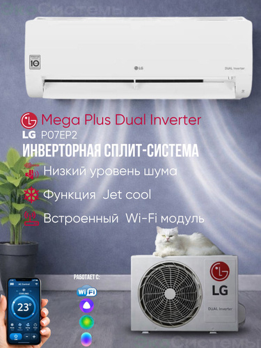 Сплит-система LG P07EP2 Mega Plus Dual Inverter до 20 м2, Wi-fi встроен, Супер тихий