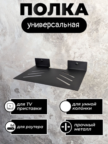 Полка для ТВ приставки 26х16см, wifi роутера, видеорекордера, игровой консоли, металл, черная