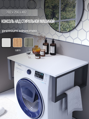 Консоль над стиральной машинкой в ванную "Gard 70" Лофт Белый