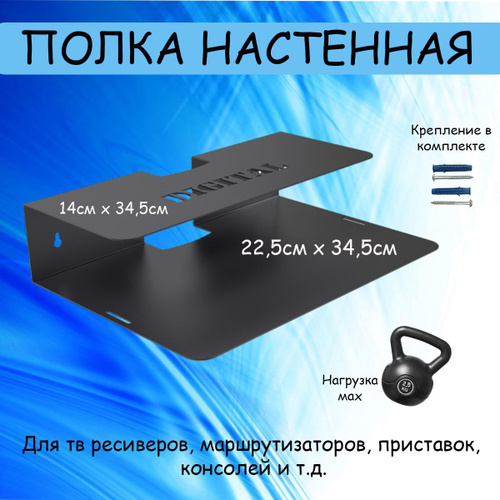Полка на стену для тв ресиверов, маршрутизаторов, приставок, консолей и прочих устройств, подвесная, настенная, черная (в пакете) РЭМО ВЛ-002