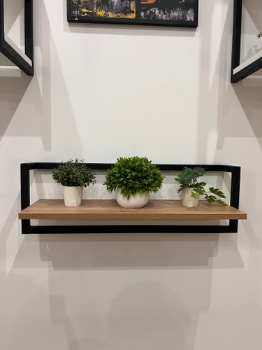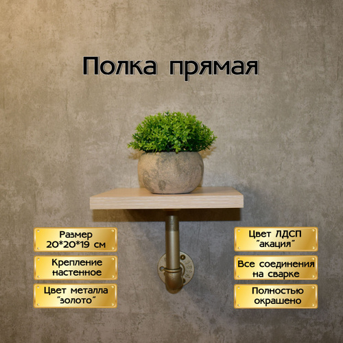 Полка прямая, в индустриальном стиле, сварка, Лофт, 20*20*19 см, акация/золото