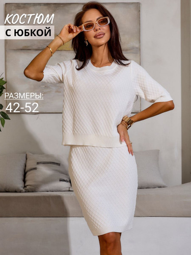 Костюм классический DarkStory летний женский с юбкой легкий трикотаж