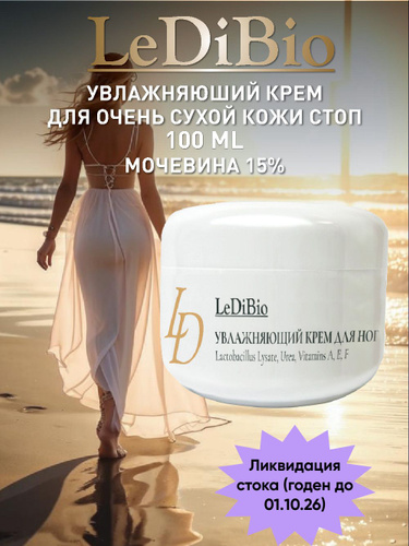 LeDiBio Крем для ног с мочевиной 15% увлажняющий от трещин шелушения для очень сухой кожи, 100 мл