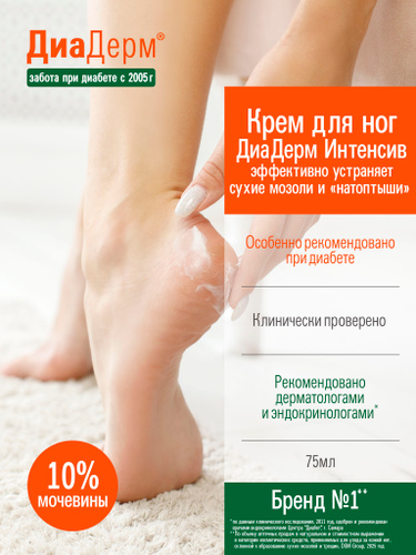 ДиаДерм Крем для ног Интенсив с мочевиной 10% от сухих мозолей и натоптышей, 75 мл
