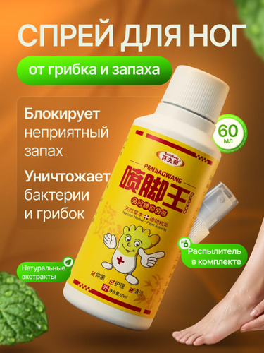 Спрей для ног от грибка и запаха , противогрибковое средство для ног и обуви устраняет зуд, запах и пот , шелушение, обладает антибактериальным действием,60 мл.