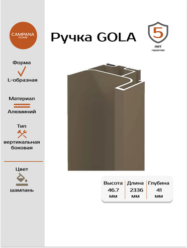 Ручка Гола вертикальная боковая цвет шампань 2336 мм
