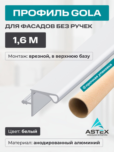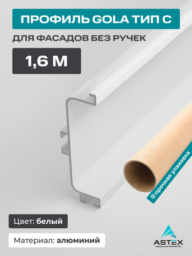 Профиль алюминиевый ASTEX GOLA (ГОЛА) ТИП С (C-образный), белый, 1,6 метра