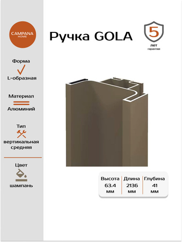 Ручка Гола вертикальная средняя цвет шампань 2136 мм