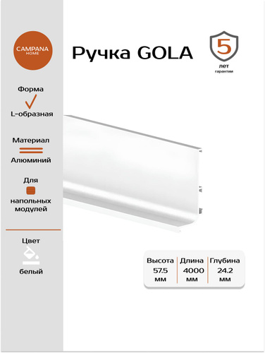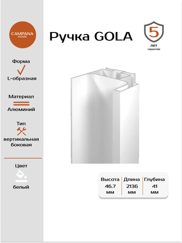 Ручка Гола вертикальная боковая цвет белый 2136 мм