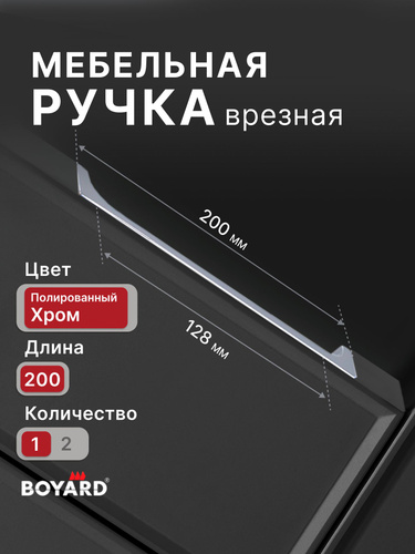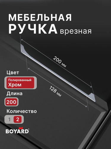 Ручка торцевая, врезная EVA 200 мм хром, Boyard, 2 шт
