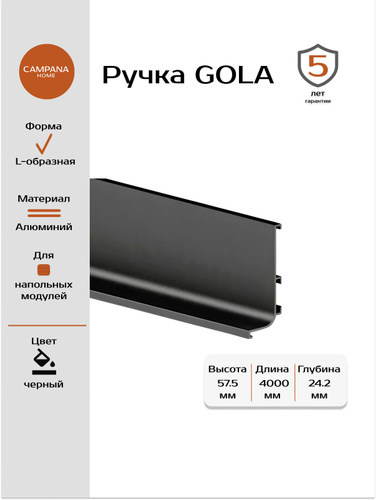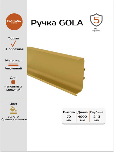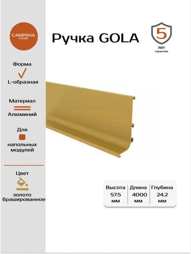 Ручка гола L для нижних модулей цвет золото брашированное 4 м. (2.4м+1.6м)