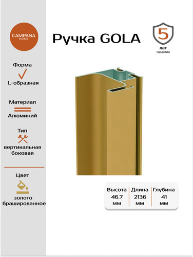 Ручка Гола вертикальная боковая цвет золото брашированное 2136 мм