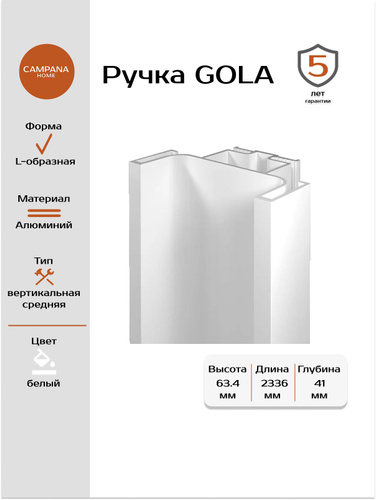 Ручка Гола вертикальная средняя цвет белый 2336 мм