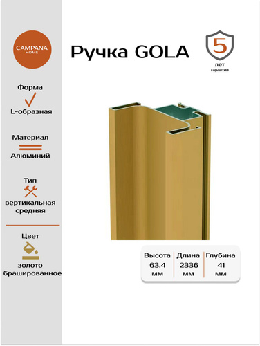 Ручка Гола вертикальная средняя цвет золото брашированное 2336 мм