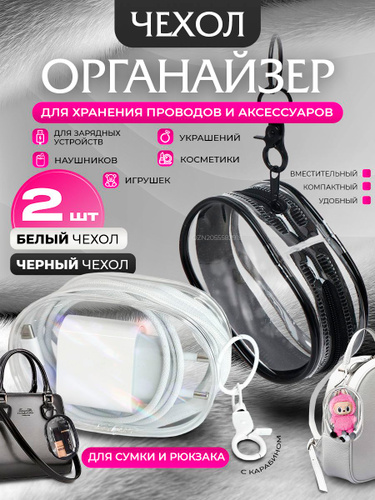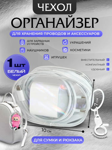 Органайзер для сумки, органайзер в рюкзак, в портфель, прозрачный, чехол для зарядки, проводов, аксессуаров
