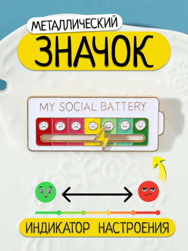 Значок металлический на рюкзак Моя социальная батарея