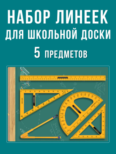 Набор чертежный для классной доски (2 треугольника, транспортир, циркуль, линейка 100 см)