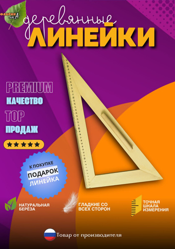 Треугольник для классной доски (треугольник классный), деревянный, 60х30х40 см, прямоугольный, С364
