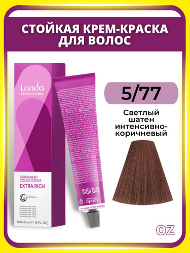 Londa Professional СТОЙКАЯ краска для волос 5/77 светлый шатен интенсивно-коричневый , 60 мл/ Лонда Профессионал профессиональная крем-краска для волос Permanent Color