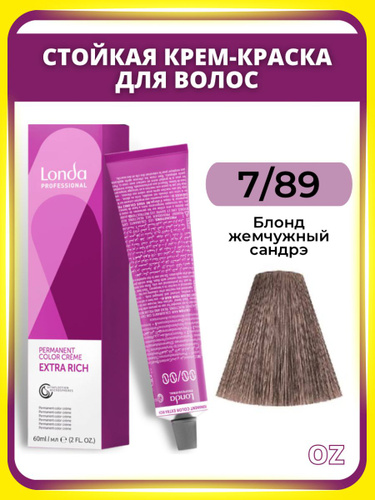 Londa Professional СТОЙКАЯ краска для волос 7/89 блонд жемчужный сандрэ , 60 мл/ Лонда Профессионал профессиональная крем-краска для волос Permanent Color