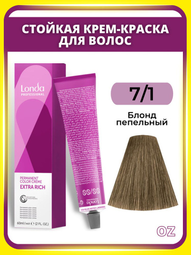 Londa Professional СТОЙКАЯ краска для волос 7/ блонд натуральный, 60 мл/ Лонда Профессионал профессиональная крем-краска для волос Permanent Color