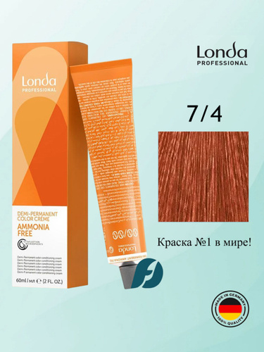 Londa Professional Demi-Permanent Ammonia Free Color 7/4 Тонирующая крем-краска для волос без аммиака - Блонд медный, 60 мл