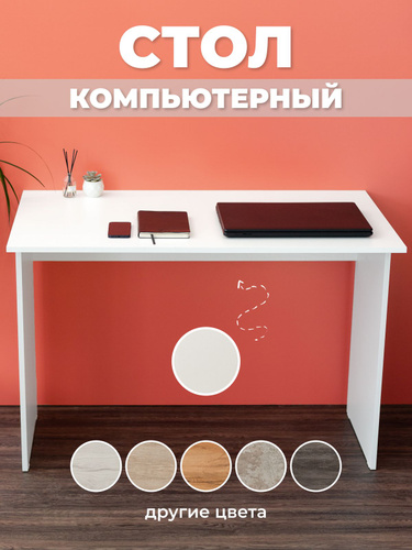 Стол письменный, 110х60х75 см Белый Компьютерный стол, усиленный