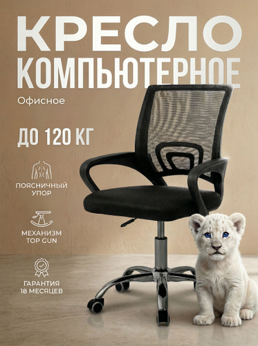 KEIZEN Кресло компьютерное CH-696 NLT, Офисное кресло с поясничным упором, черное (KZ-7351116)