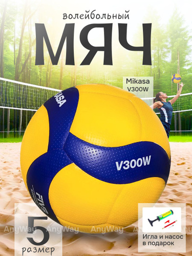 Волейбольный мяч Mikasa спортивный для тренировок (мячик для волейбола с насосом и иглой) V300W размер 5