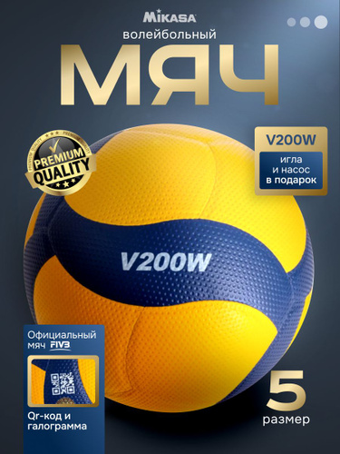 Мяч волейбольный Mikasa V200W; профессиональный мяч FIVB; размер 5 + игла + сумка +насос в подарок