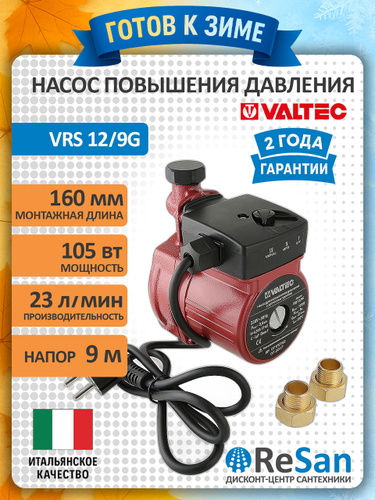 Насос повышения давления VALTEC VRS 12/9G для водоснабжения бытовых систем компактный малошумный энергоэффективный насос VRS.129G.15.0