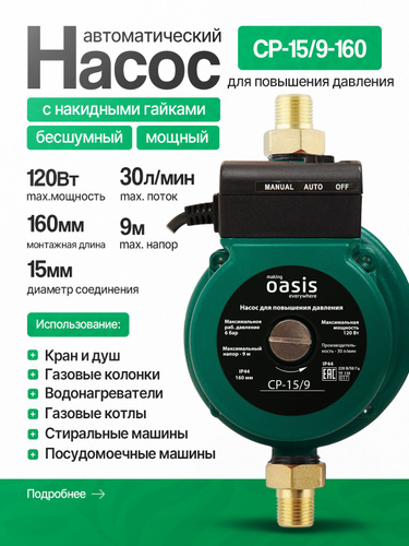 OASIS Насос для повышения давления воды CP-15/9 повысительный, циркуляционный, автоматический